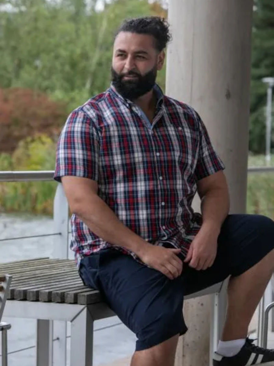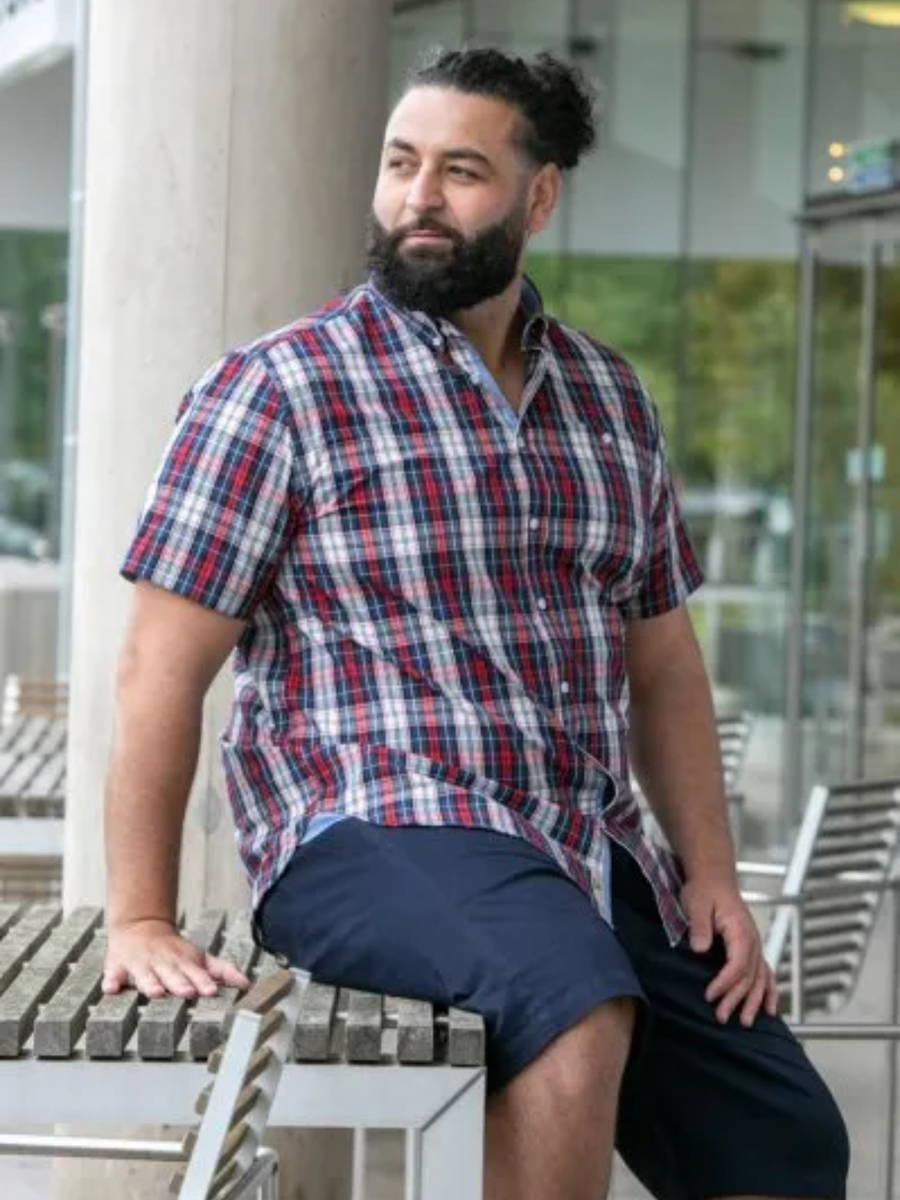 Lyhythihainen ruutupaita. Paidassa on nappikaulus ja rintatasku.