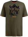 Vihreässä paidassa printti, jossa gorilla soittaa rumpuja.