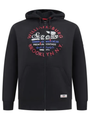 Musta collegetakki hupulla ja rintaprintillä.Tarkemmat tiedot vaatteesta: